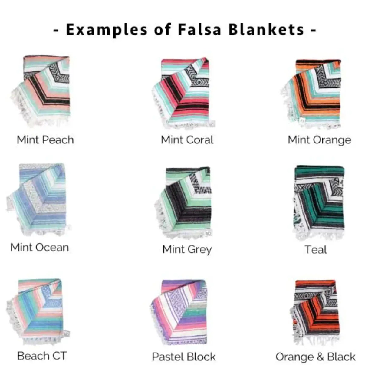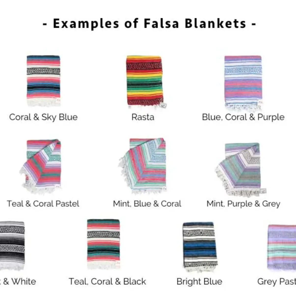 *These colorways will be random and we cannot accomodate requests for certain colors. We will make sure the assortment is varied and of great quality. The assortment can include colors not listed in our store. If you prefer specific styles or colors, you can order the blankets separately through our traditional falsa listing.