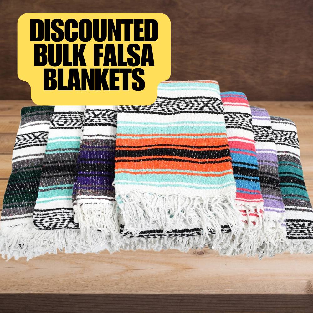The best value for Mexican blankets that we offer! Choose a bulk pack of Traditional Mexican Falsas to display at your store with assorted colorways to reach even more customers.