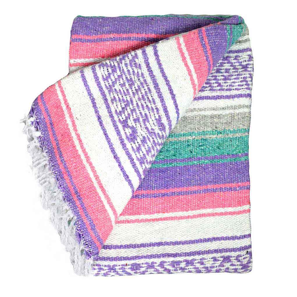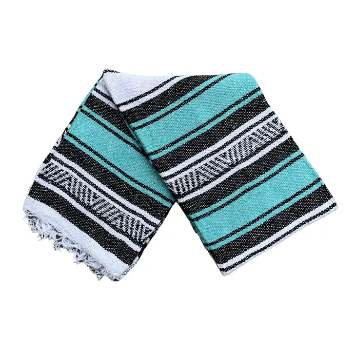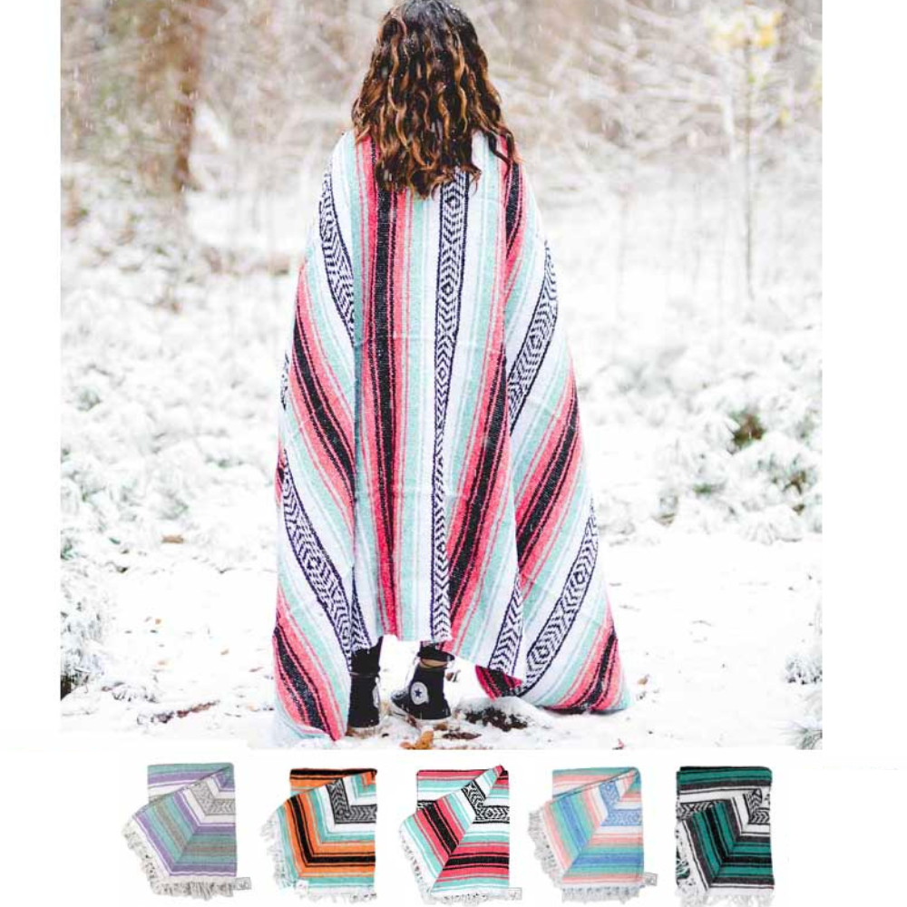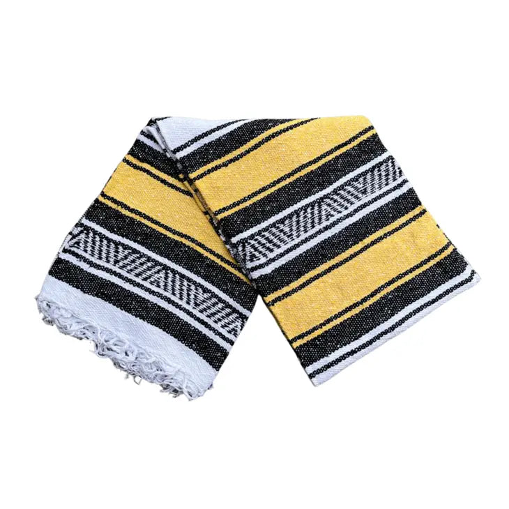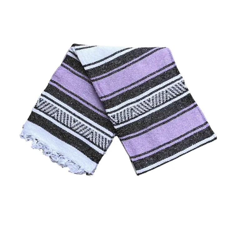 These authentic Mexican falsa blankets are woven in Mexico and made with the traditional striped pattern. The loose weave is soft and lightweight, making them ideal for travels, outdoors, or as a nice accent piece or home throw.