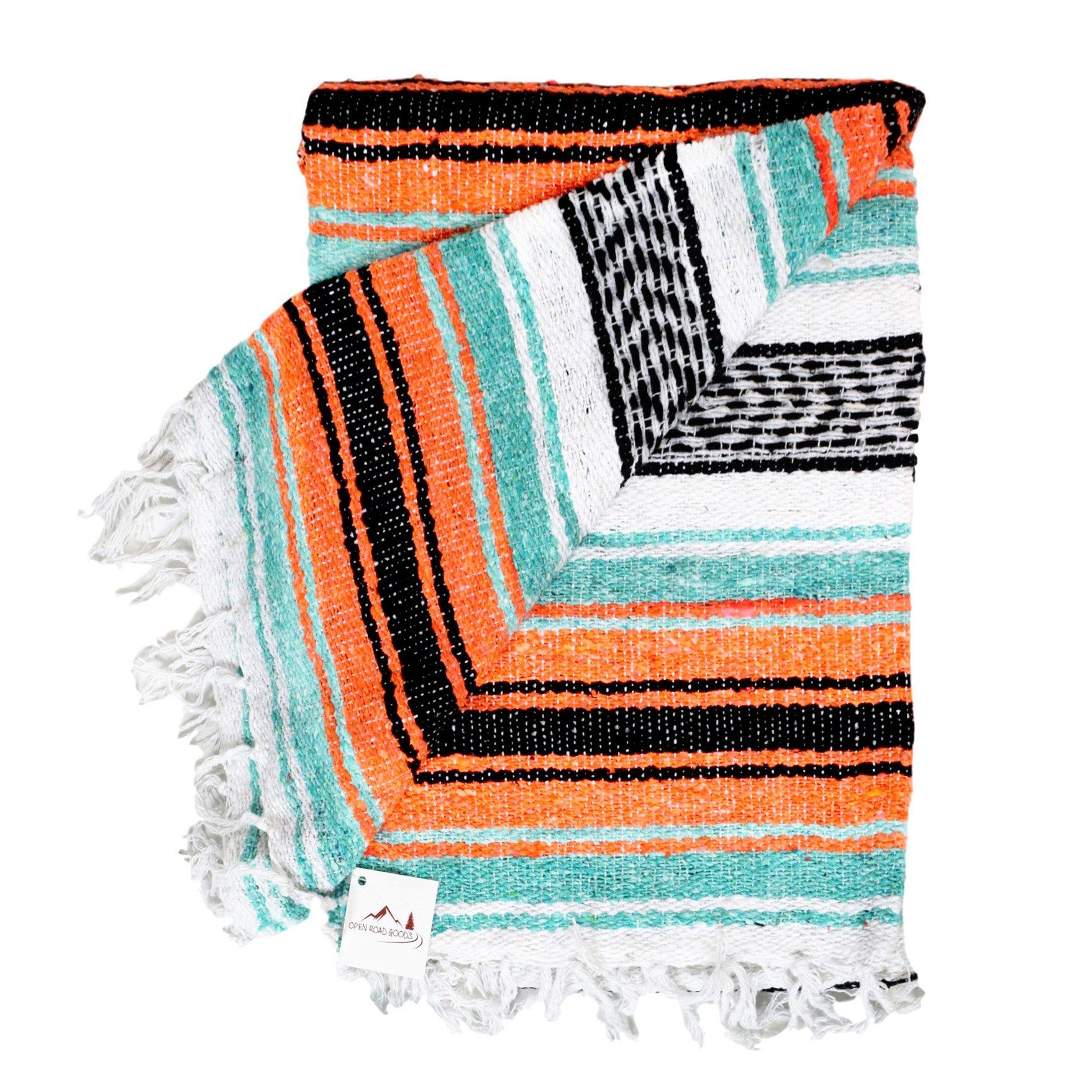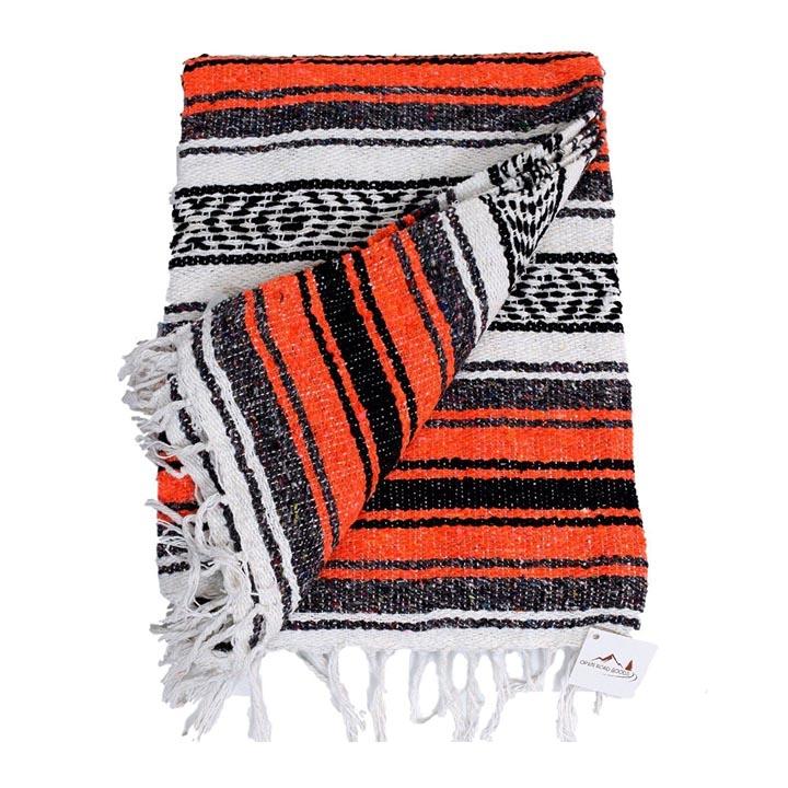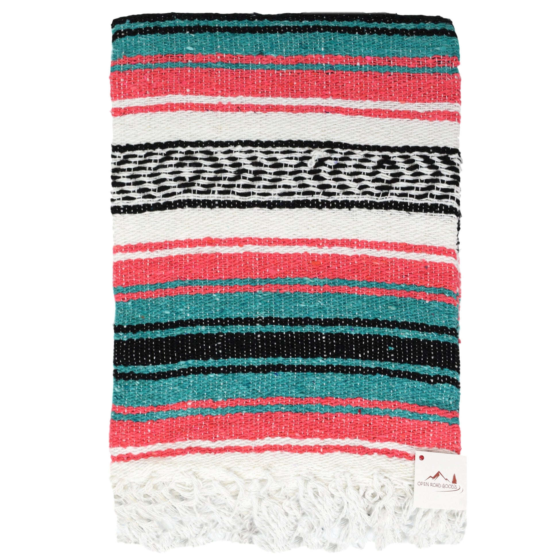 These authentic Mexican falsa blankets are woven in Mexico and made with the traditional striped pattern. The loose weave is soft and lightweight, making them ideal for travels, outdoors, or as a nice accent piece or home throw.
