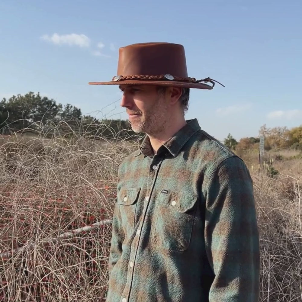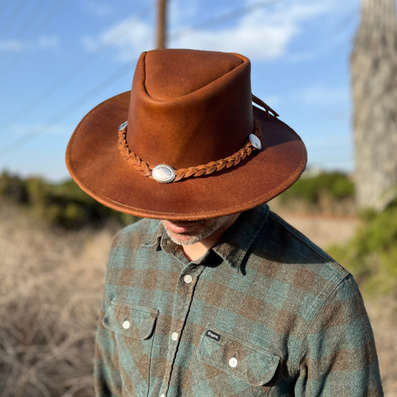 These Unisex Leather Hats are handcrafted in Mexico and combines style + functionality. Made from high-quality leather, this classic hat offers both durability and timeless fashion. Perfect for any outdoor adventure (including coachella) or everyday wear, it's a must-have for any hat collection.
