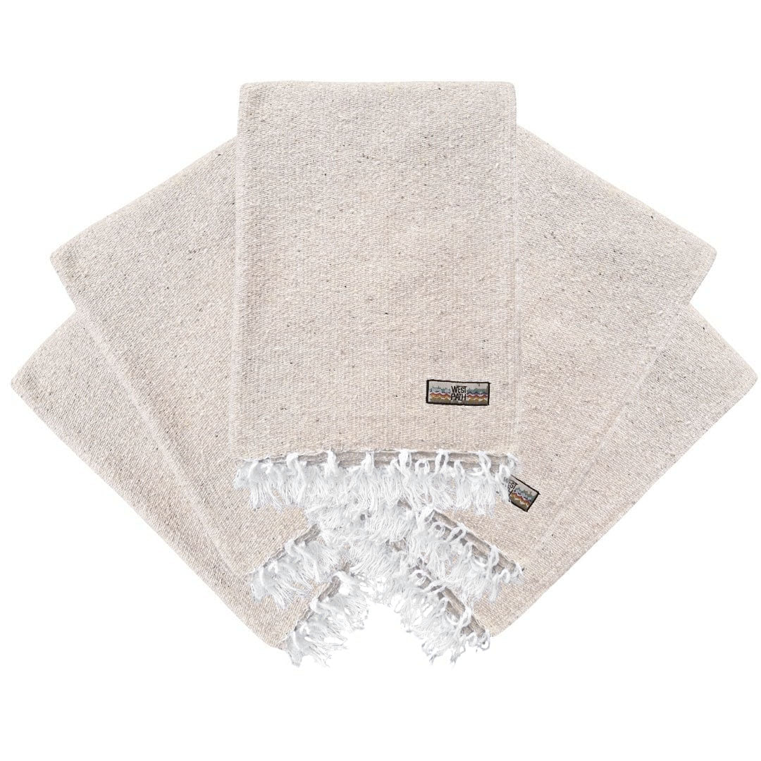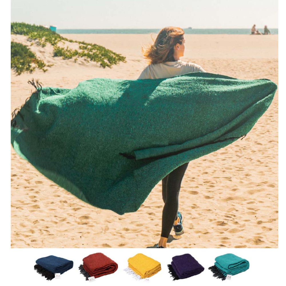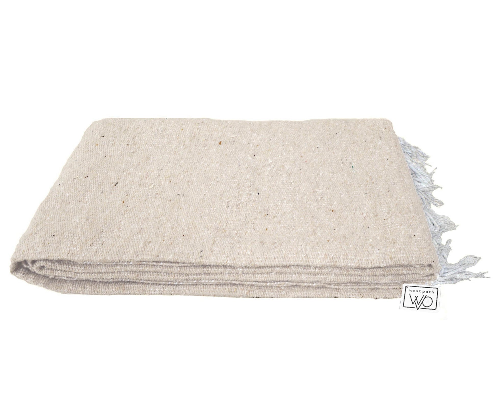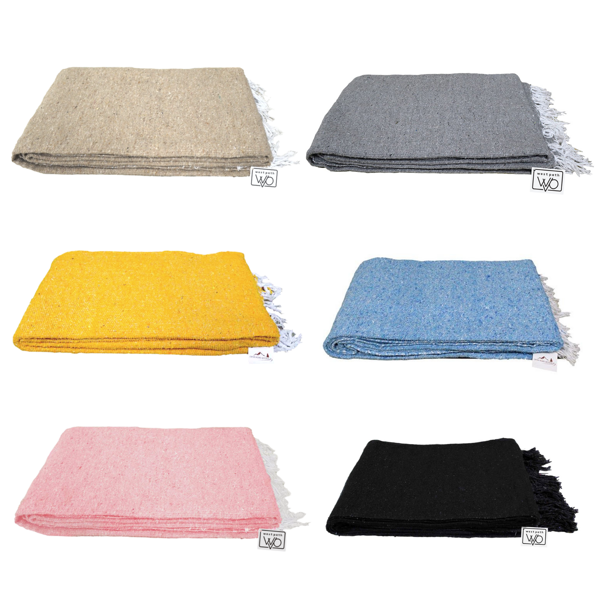 This Mexican blanket is made with solid colors lending a minimalist look. It is crafted from a cotton blend & great for yoga, home, outdoors and more.